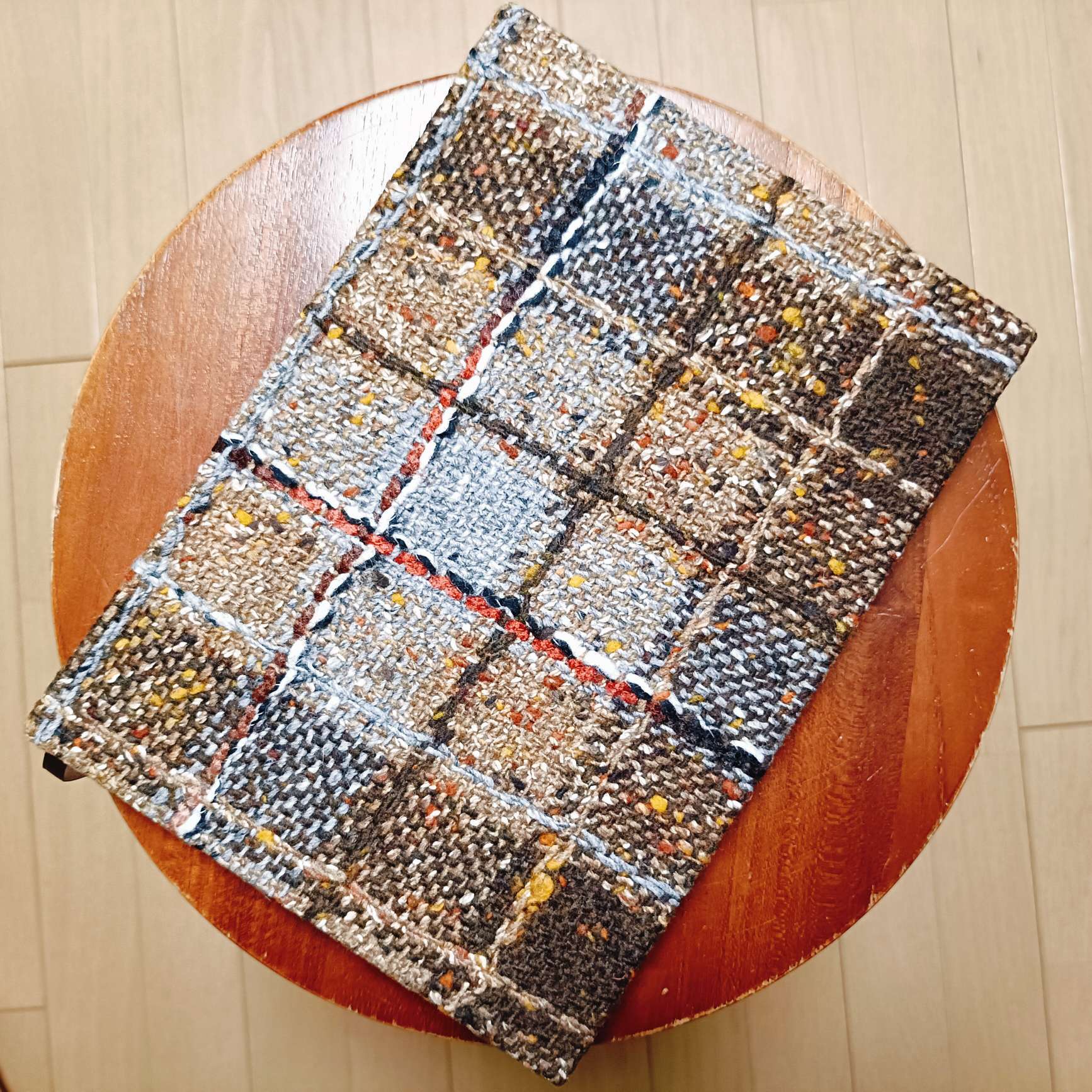 もこもことしたウール素材で、ざっくり織られたブロックチェック生地を表紙に使用した、テルコ雑貨店オリジナル・A5サイズのハードカバーノート、方眼バージョンです。