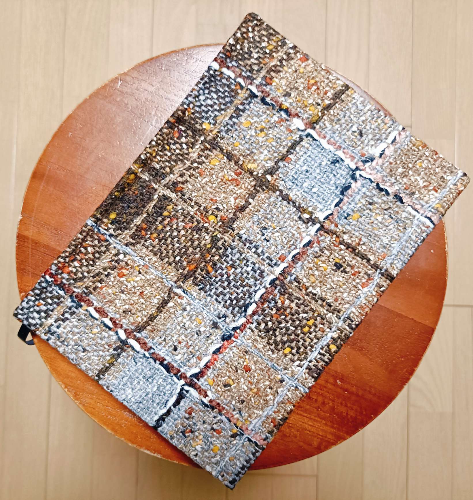 もこもことしたウール素材で、ざっくり織られたブロックチェック生地を表紙に使用した、テルコ雑貨店オリジナル・A5サイズのハードカバーノート、無地バージョンです。