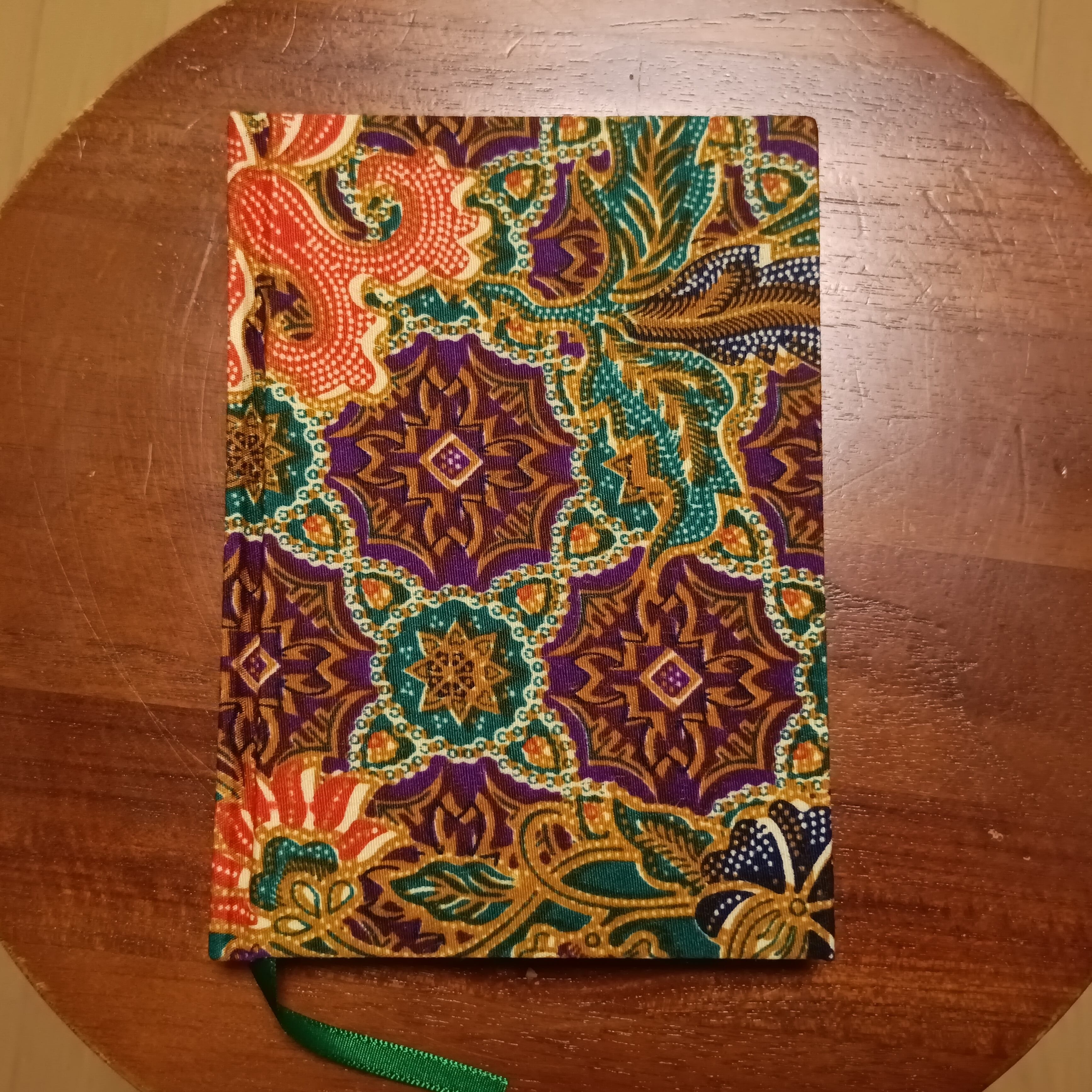 マレーシアの伝統的な民族衣装として用いられるバティック生地(ろうけつ染め)を表紙に使用した、テルコ雑貨店オリジナル・A6サイズのハードカバーノート、方眼・罫線バージョンです。