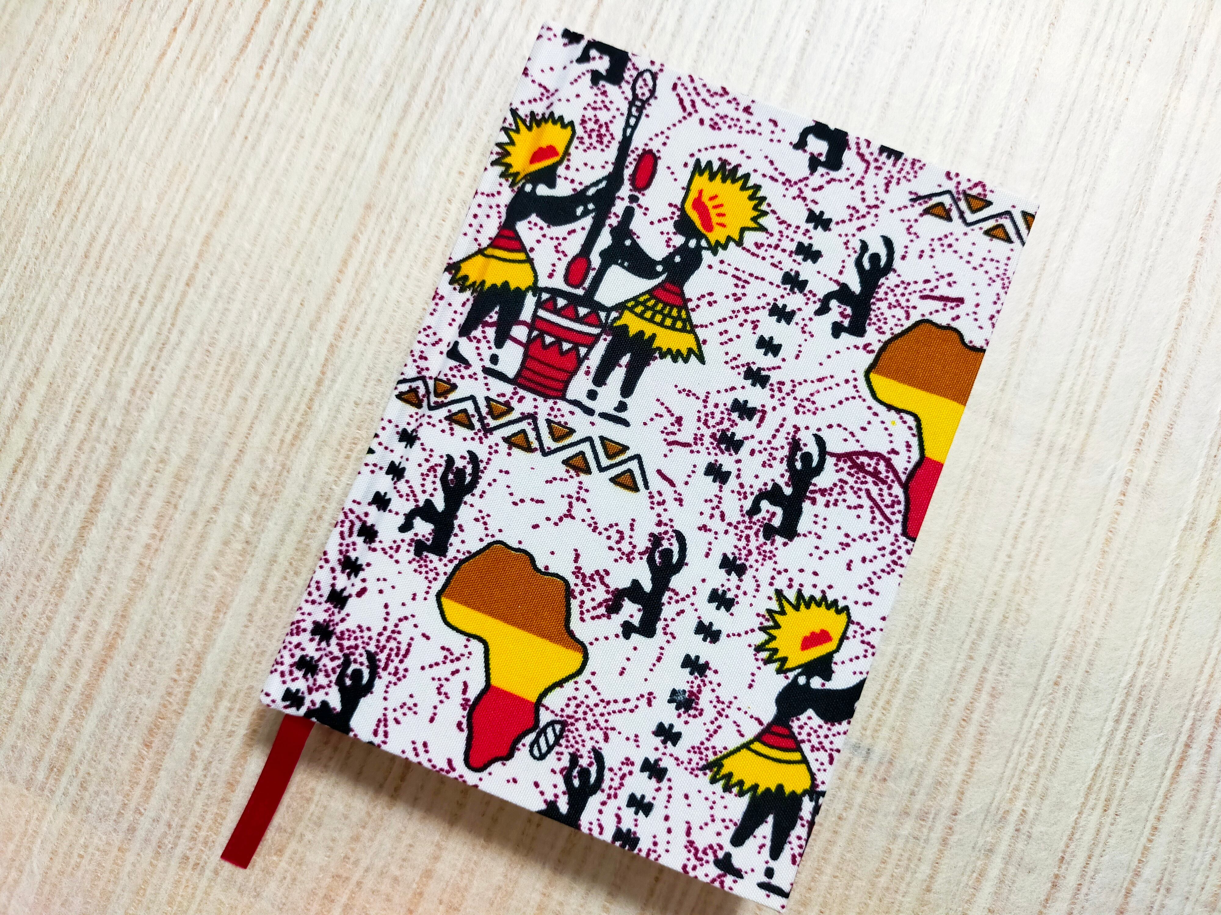 アフリカはアンゴラ共和国で伝統的な衣装として着られるプリント生地を表紙に使用した、テルコ雑貨店オリジナル・A6サイズのハードカバーノート、無地バージョンです。