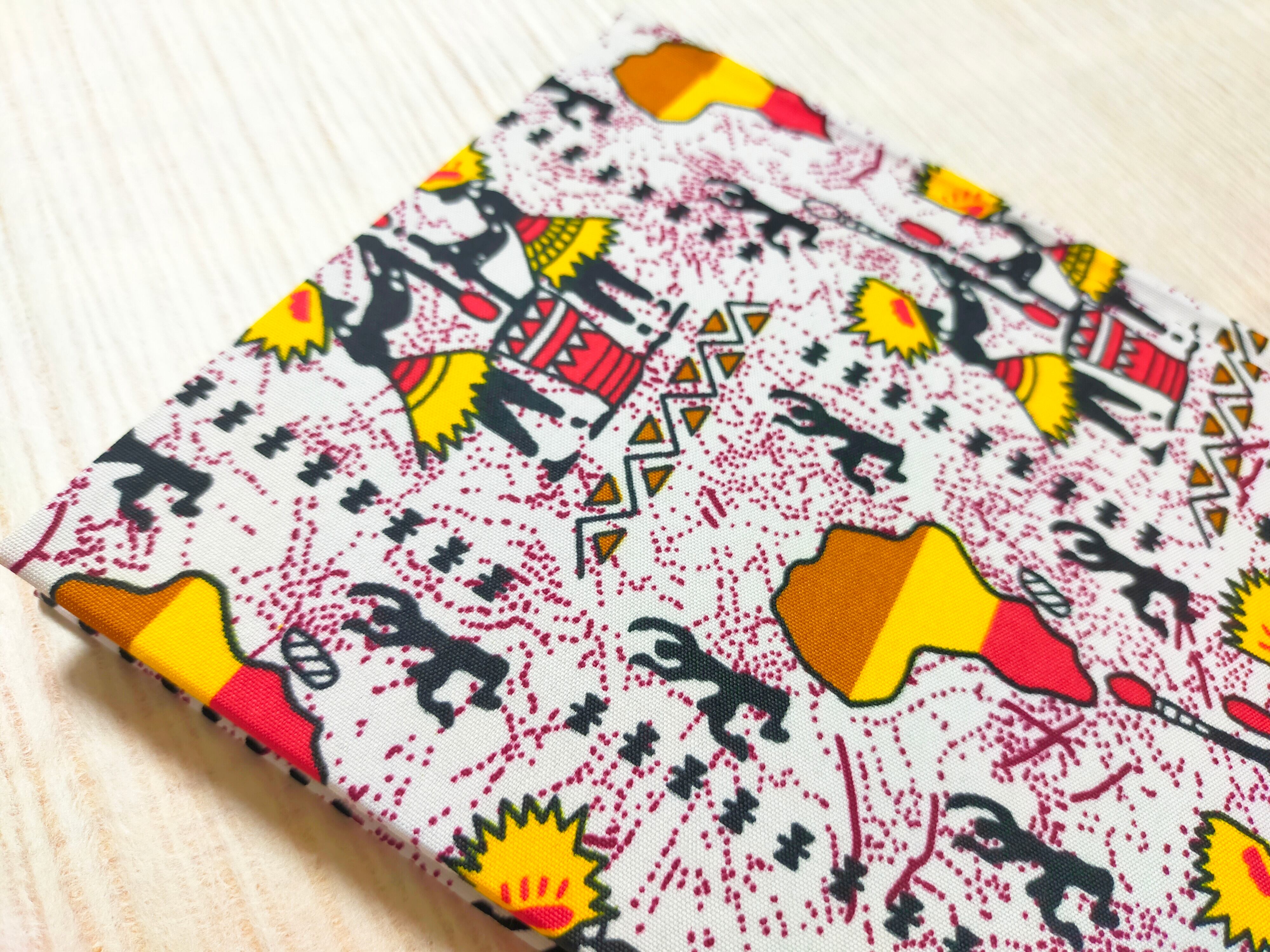 アフリカはアンゴラ共和国で伝統的な衣装として着られるプリント生地を表紙に使用した、テルコ雑貨店オリジナル・A5サイズのハードカバーノート、無地バージョンです。